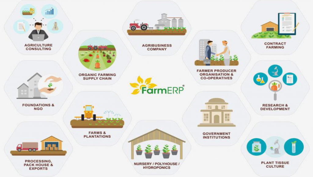 FarmERP is a complete solution from purchase, inventory, production, post production, planning, farm profile, accounts, contract farming including HR. Users benefits from the software’s data management, farmer ledgers, MIS reports, yield estimates and harvest records.