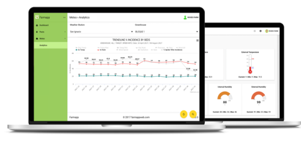 Farmapp is an integrated pest and disease management platform for crops. It combines information from different technological modules such as geo-referenced scouting and spraying apps, soil sensors, and weather stations. Once the information is processed and analysed, it is delivered back to the farmers via email, SMS, and access through the business intelligence platform. This information is used to plan biological controls, analyse and program the spraying of a particular product, monitor the incidence of pests and diseases, and automating greenhouses. The platform is mostly used for protected cropping (greenhouses) and is currently implemented in over 1,500 greenhouses around the world.