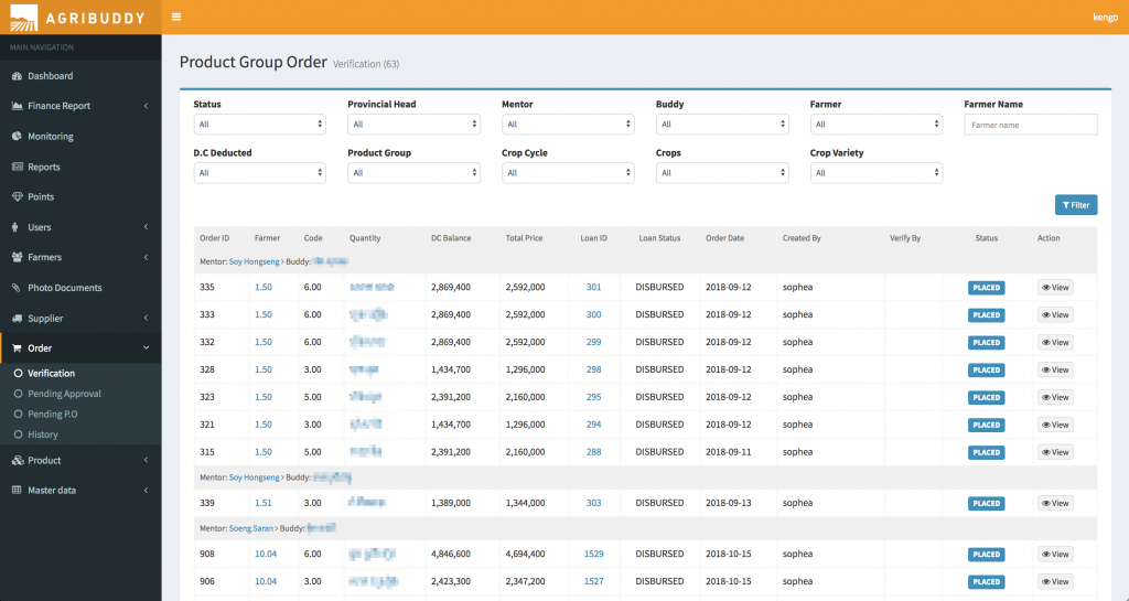 Buddies are the main sources of data input into the system, and are mentors to farmers who are learning to use the digital platform. Buddies enable the connection of suppliers to farmers using the platform and also enable all aspects of transaction payment throughout the lifecycle.