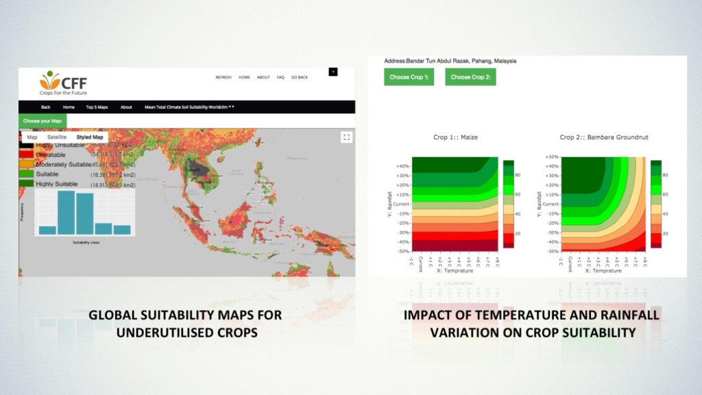 CropBASE has developed an online crop suitability evaluator, based on multi-criteria land suitability methodology and local priorities. The app shortlists potential under-utilised crops that can grow at any location for a range of end uses. CropBASE will help transform agricultural business by improving information flows and reducing production risks using the vast potential of under-utilised crops and information technology.