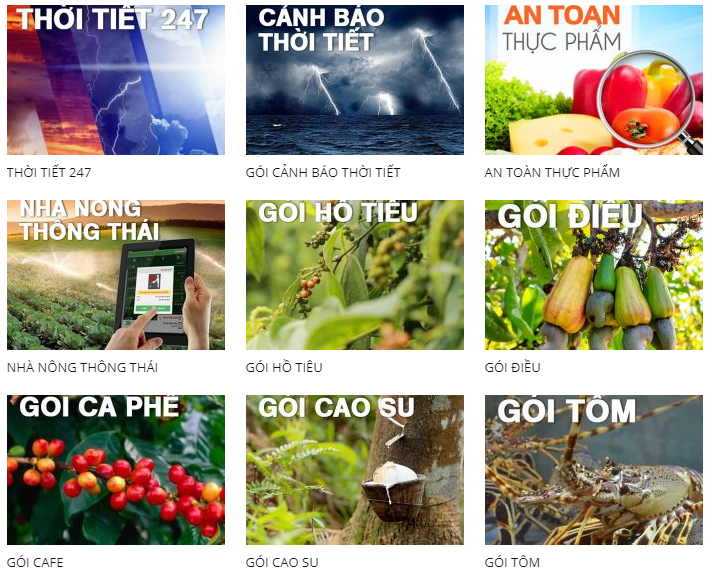 Weather and agriculture solution Agrimedia provides agriculture advisory information services to farmers and input manufacturers. This gives farmers accurate forecasts, and allows them to take appropriate actions that protect the value of their harvests. With a wide range of platforms (SMS, call centre, web and mobile application), farmers can access information in a cheap and efficient manner. This service is currently provided in Vietnam through partnerships with mobile network operators.